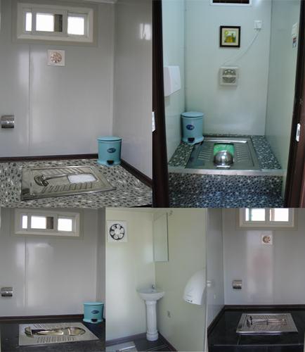標(biāo)準(zhǔn)配置:不銹鋼蹲便器、防滑火燒板地面、化妝鏡、衣帽鉤、手紙盒、廢紙簍、照明燈、換氣扇、指示牌等