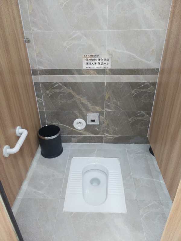 室內(nèi)配置:不銹鋼蹲便器、火燒板防滑地面、化妝鏡、衣帽鉤、手紙盒、廢紙簍、照明燈、排風(fēng)扇、指示牌等。